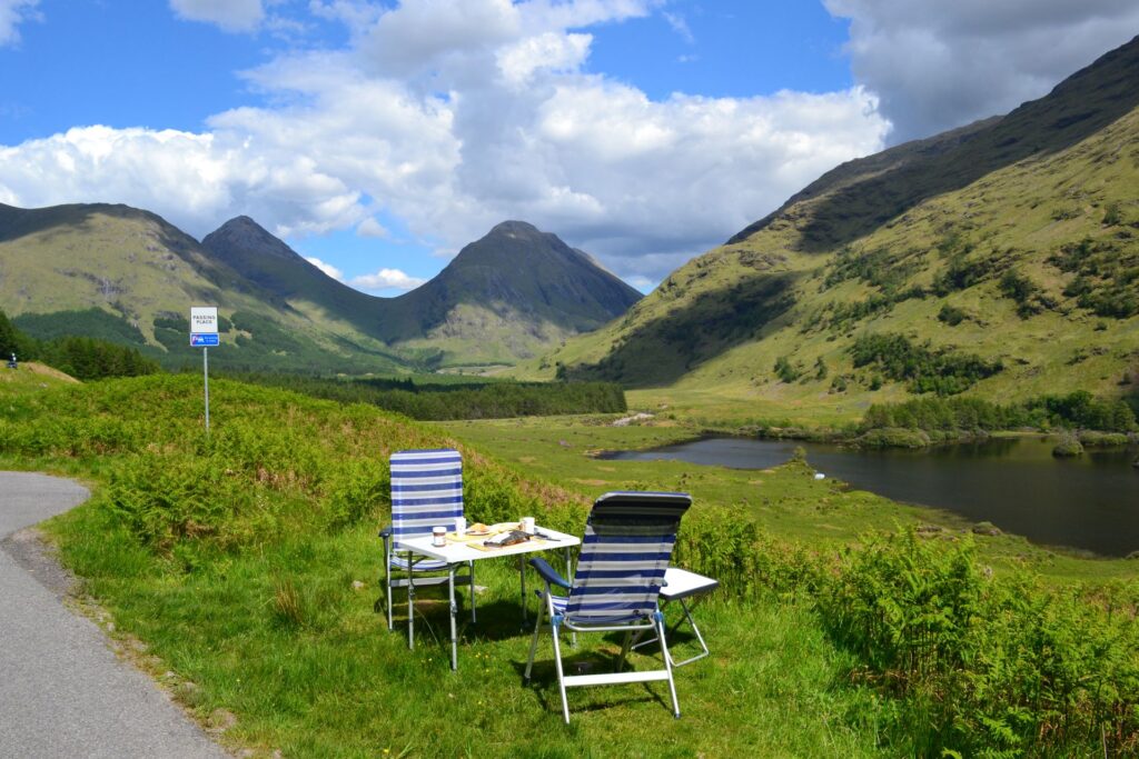 We rijden een prachtige, rustige route over Glencoe naar Tyndrum. We komen rond 18.30 uur aan en vinden een overnachtingsplekje op het parkeerterrein achter The Green Welly Stop. Voor een paar pond mag je daar overnachten. We ontmoeten een ander Nederlands stel en eten gezellig met zijn viertjes bij de naastgelegen Tyndrum Inn.