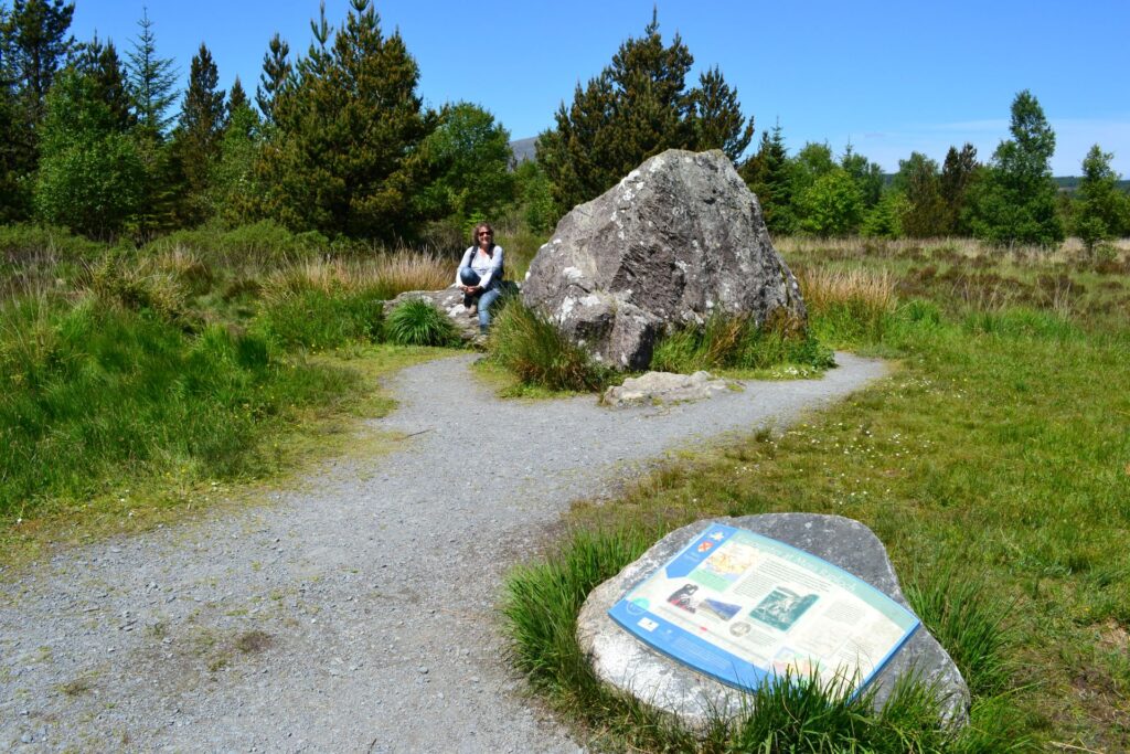 Op weg naar Kirkcudbright hebben we een wandeling gemaakt naar Bruce’s Stone. Dit is een groot granieten rotsblok gelegen aan de noordkant van Loch Trool. Het herdenkt de overwinning van Robert the Bruce op de Engelsen bij de Slag bij Glen Trool in 1307 tijdens de Schotse Onafhankelijkheidsoorlogen. Robert the Bruce was de koning van Schotland van 1306 tot 1329. Bij de Slag bij Glen Trool in 1307 lukte het hem en zijn kleine troepenmacht om enorme verliezen toe te brengen aan de Engelse troepenmacht. Door rotsblokken de steile heuvels af te rollen naar de Engelse troepen en vervolgens een aanval uit te voeren, dwong Robert the Bruce de Engelsen zich terug te trekken. De steen werd daar in 1929 geplaatst ter gelegenheid van de 600ste verjaardag van Bruce’s dood.