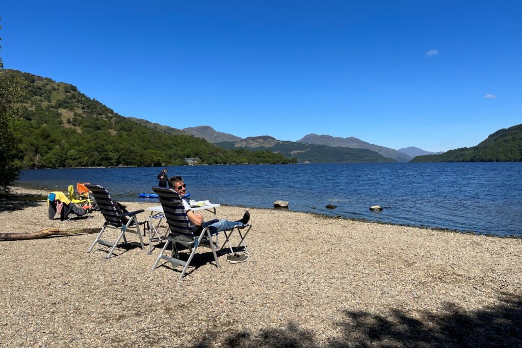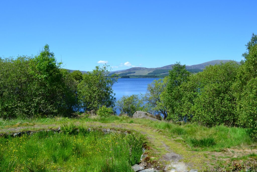 De volgende dag rijden we een mooie route langs Loch Lomond. Maar het is ontzettend druk in verband met het mooie weer en omdat het een nationaal feestweekend is (Jubilee Weekend) in verband met Queen Elizabeth 70 jaar op de troon. Daarom stoppen we rond 11.00 uur langs het Loch om te pauzeren, te lunchen en te wandelen. Eind van de middag rijden we weer verder en vinden een overnachtingsplekje op het parkeerterrein bij het Greenock Cut Visitor Centre in Inverclyde. Met nog één andere camper staan we hier heerlijk rustig.