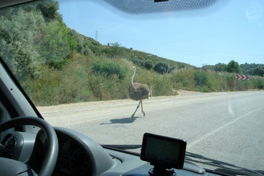 De mieren en kevers zijn in Turkije ongeveer tien keer zo groot als in Nederland. Verder hebben we veel schildpadden gezien, Vlaamse gaaien (vaak in stelletjes), zwaluwstaartjes en eekhoorntjes. En laatst rende er ineens een struisvogel langs onze camper! De natuur is prachtig in het voorjaar, veel wilde bloemen in de bermen en groene bomen.