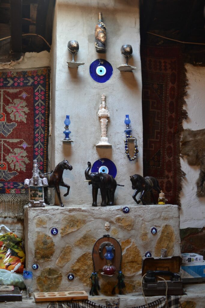 Overal in Turkije kom je het zogenaamde “beschermende oog” tegen. Deze vindt je in sieraden, in wanden, plafonds, etc. De Turken geloven dat dit oog beschermt tegen het boze oog van andere mensen (afgunst/jaloezie). Wij hebben nu ook een beschermend oog in de camper hangen. Baat het niet, dan schaadt het niet.