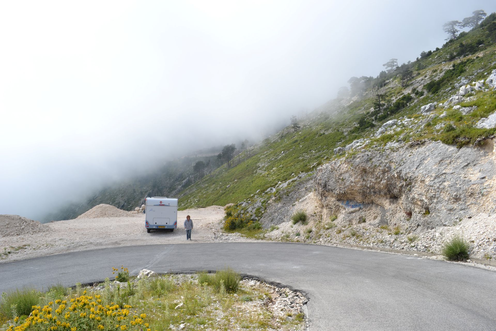 De camper konden we gemakkelijk kwijt op een groot bewaakt parkeerterrein bij de ingang.