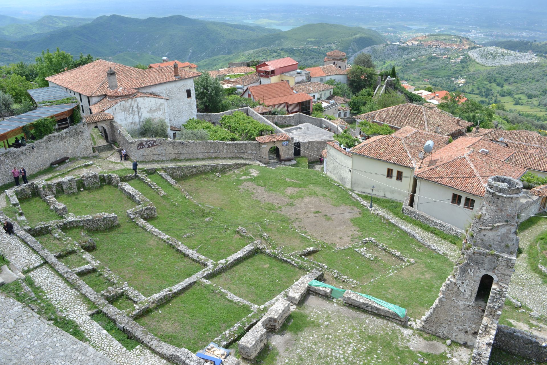Binnen het citadel terrein wordt nog gewoon gewoond en het is leuk om doorheen te lopen. Er zijn veel oude kerkjes en ruïnes en er is een oud wateropslagreservoir. Wel jammer van het vele afval en de graffiti op de muren. Achteraf gezien, vragen we ons af of het de moeite waard was om via een, in zeer slechte staat verkerende, omweg Berat te bezoeken. Maar als je je in Albanië laat leiden door de kwaliteit van de weg, dan kom je nergens.