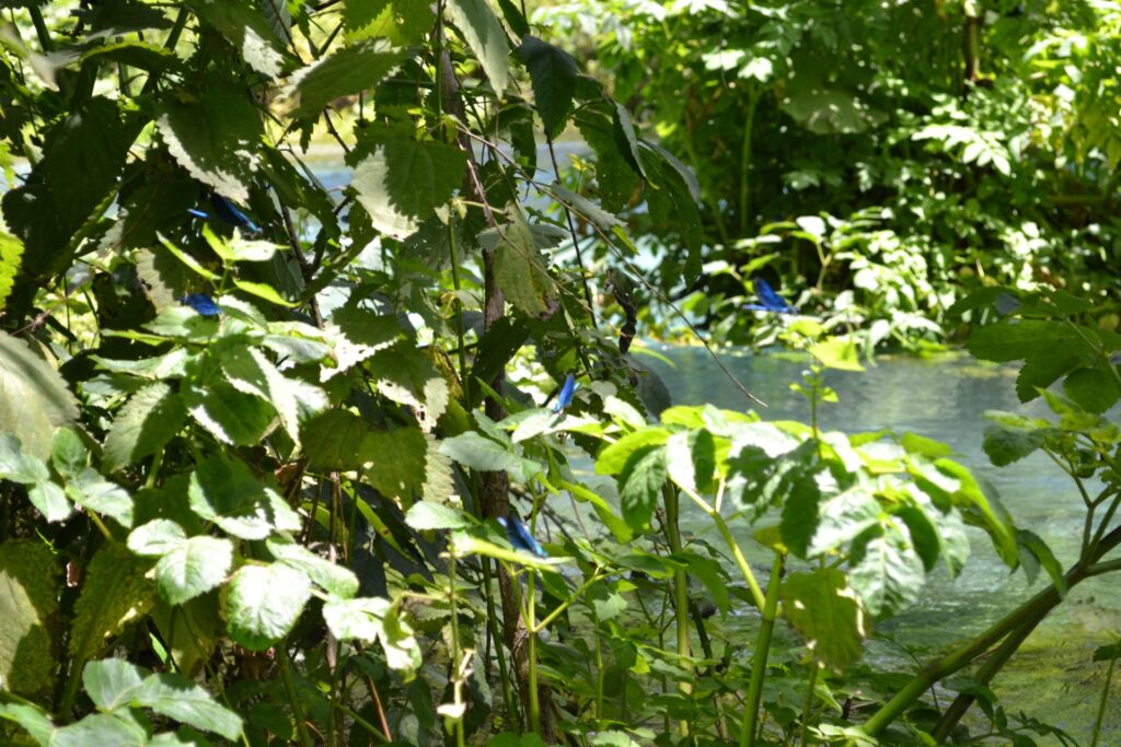 Op de dag van de grensovergang naar Griekenland zijn we in Albanië nog even langs het prachtige natuurverschijnsel “Het Blauwe Oog” (Syri i Kaltër) gereden. Voor een paar euro konden we door een slagboom heen, en over een slechte weg bereikten we een paar kilometer later “Het Blauwe Oog”. Dat is een natuurlijke bron van minstens 80 meter diep met heel diepblauw water. En overal vliegen blauwe libelles en blauwe vlinders. Een hypnotische plek.
