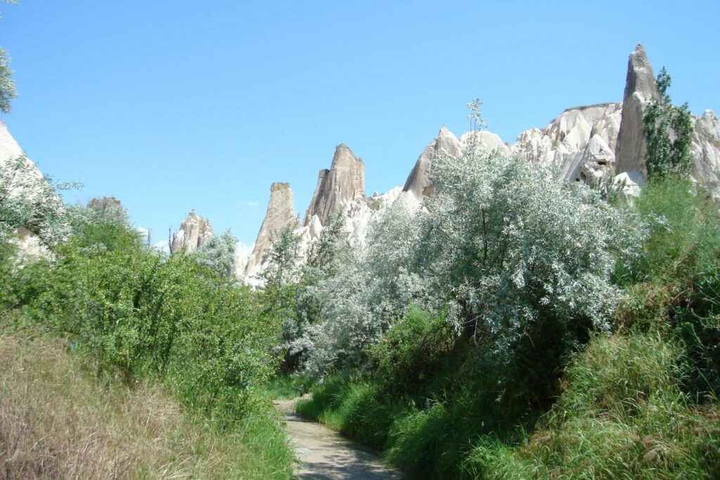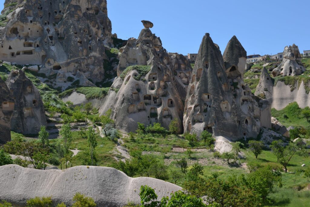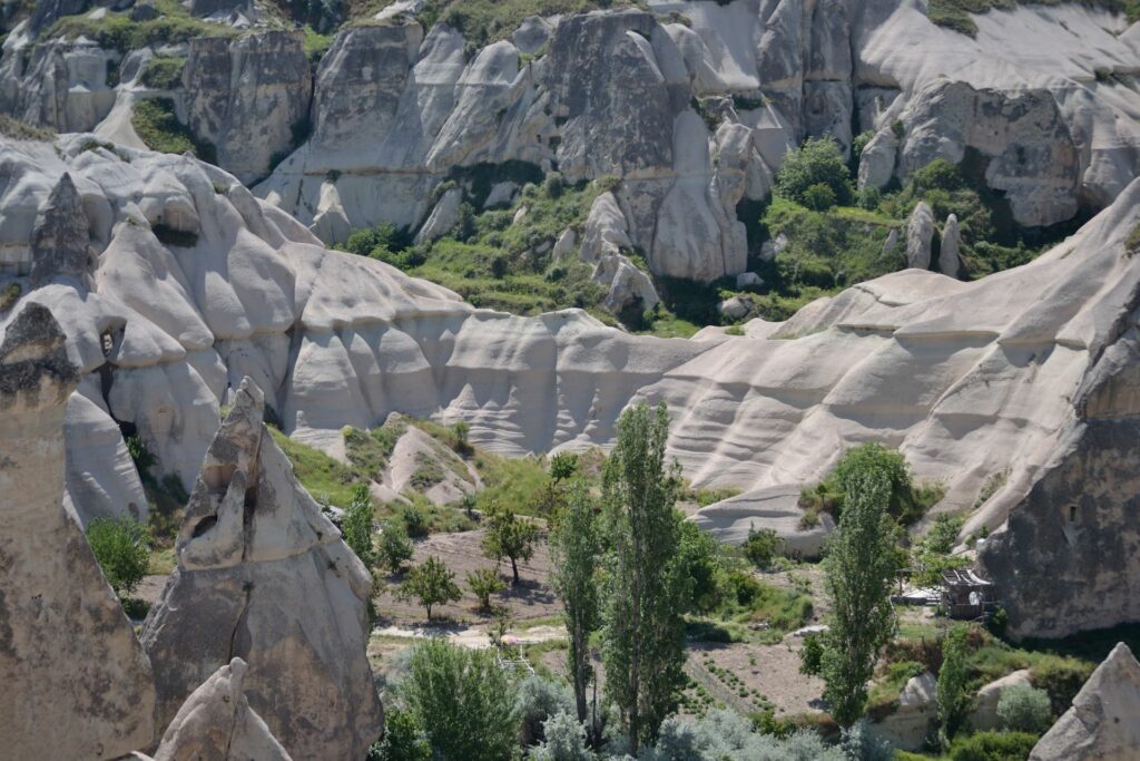 Ook zijn er nog veel sporen van bewoning te vinden. In de zevende eeuw vluchtten veel christenen naar Cappadocië om zich in zelf uitgehakte grotten schuil te houden voor de binnengevallen Arabieren. In de elfde eeuw kwam er een tweede golf met christenen die op de vlucht waren voor de islamitische Seldsjoeken. Daarom zijn er veel grotwoningen, grotkerkjes en grotkloosters te vinden. Ook zijn er veel duiventillen, uitgehakt in de rotsen. Deze werden vroeger gebruikt om duiven aan te trekken, zodat hun behoefte als bemesting kon worden gebruikt.