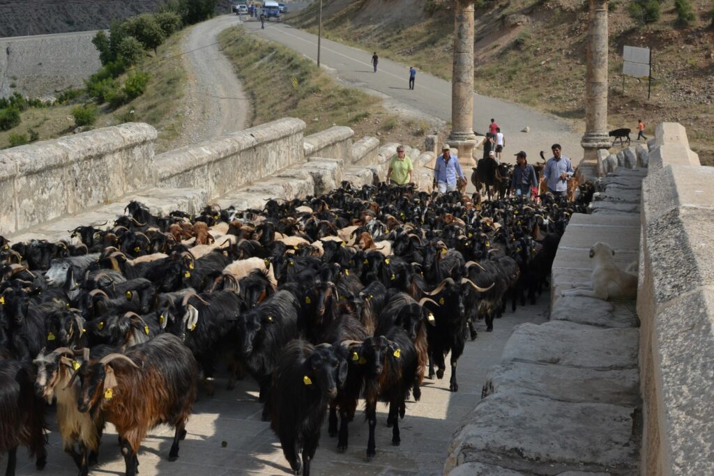 Geiten op Romeinse brug
