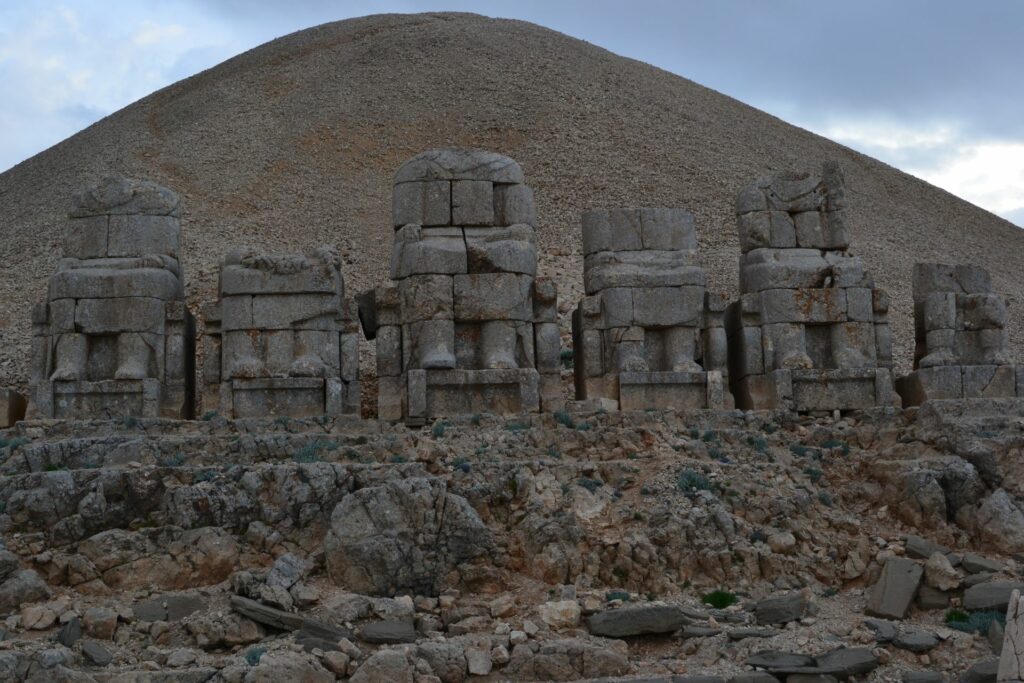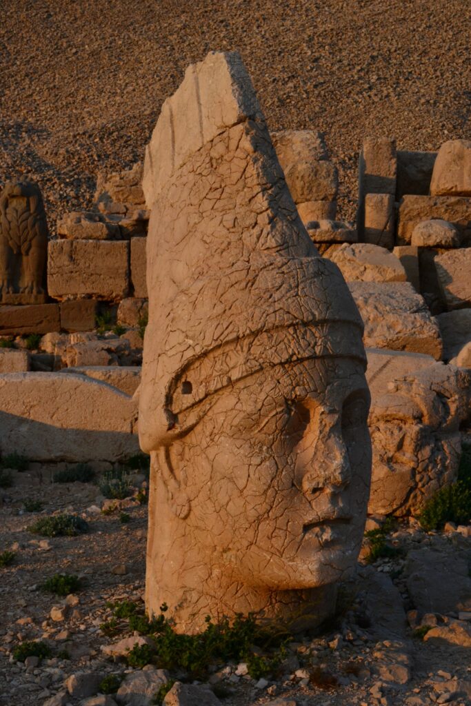 Op 2200 meter hoogte op de berg Nemrut zijn enorme stenen hoofden op tronen gebouwd door koning Antiochus I Theos, die tussen 69-38 jaar voor Christus regeerde in het Commagene koninkrijk. Ter verheerlijking van zijn bewind liet hij drie enorme terrassen bouwen op de bergtop met daarop kolossale standbeelden van hemzelf en van diverse goden.