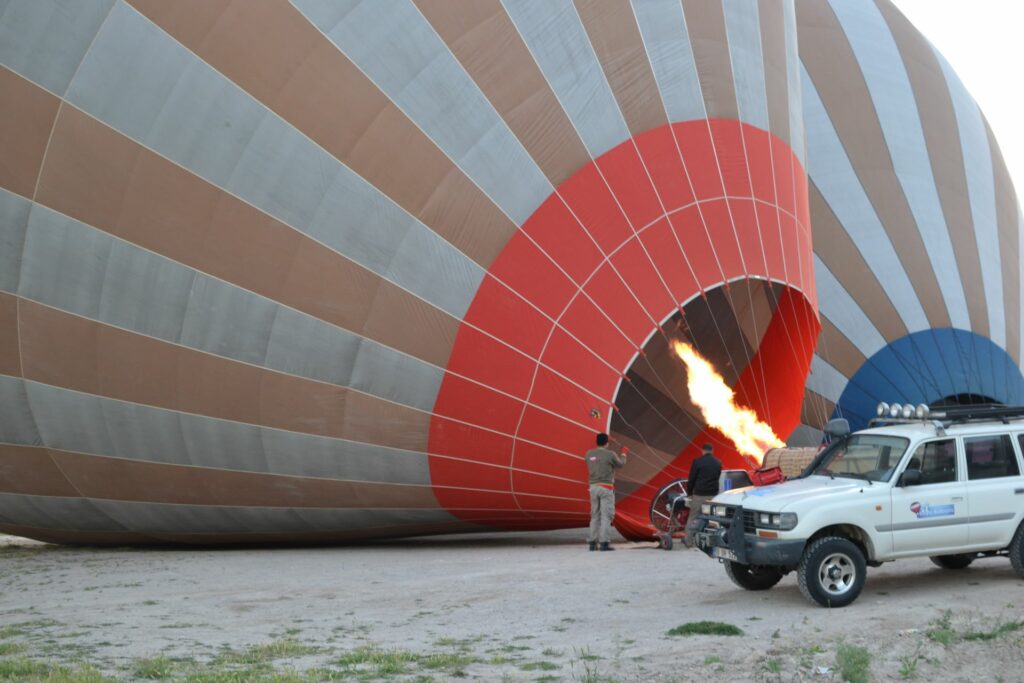 Toch zijn we geen moment bang geweest, want deze piloten doen dit dagelijks en zijn zo ervaren en rustig. Het landen van de ballon was ook bijzonder. Dat gebeurde namelijk achterop een platte aanhangwagen die getrokken wordt door een 4WD. Voordeel is dat ze de mand daarna meteen terug kunnen rijden. De piloot communiceert met de mensen op de grond en deze rijden naar de vermeende landingsplek toe. Dit kan best ergens midden in een weiland zijn. In ons geval stond de auto echter te scheef, dus landde de piloot heel rustig eerst op de grond, daarna werd de mand door personeel vastgehouden, de piloot steeg weer een beetje op, en landde alsnog op de aanhangwagen. Daarna mochten wij uitstappen.