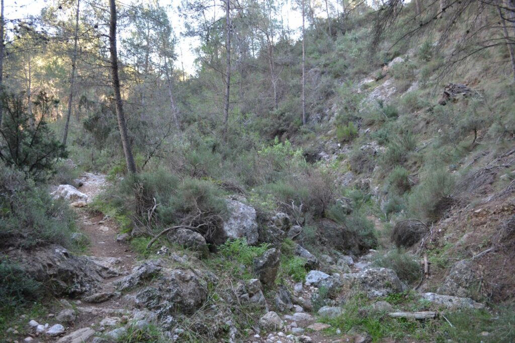 Vanaf de camping verlaat je al snel de asfaltweg en loop je een rivierbedding in. Dit is de PR-MU 79. De route is geel/wit/rood respectievelijk geel/wit gemarkeerd.