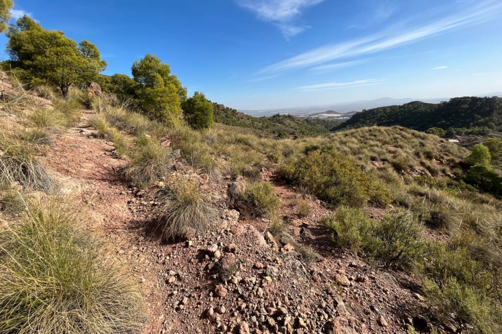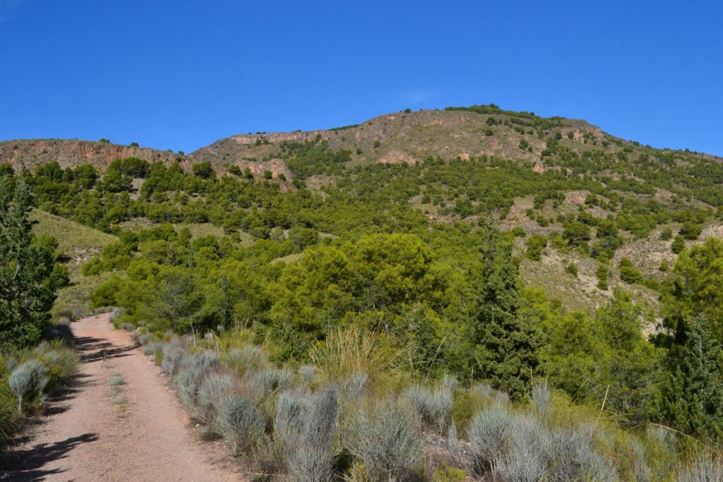 Het eerste stuk van de wandeling loop je langs het irrigatiekanaal richting de bergen, over brede onverharde wandelpaden.