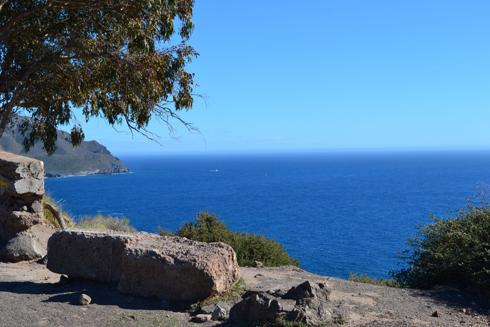Vanaf het uitzichtpunt, de Mirador de La Amatista, heb je een prachtig zicht op een gedeelte van de ongerepte kuststrook van het Cabo de Gata-Nijar natuurpark en op het mooie blauwe water van de Middellandse Zee.