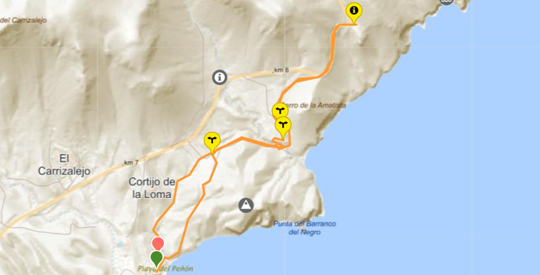 De terugweg loopt gedeeltelijk langs hetzelfde pad als de heenweg. Het overige deel wandel je over stenige wandelpaadjes en door een mooi palmenpark terug naar de parkeerplaats.