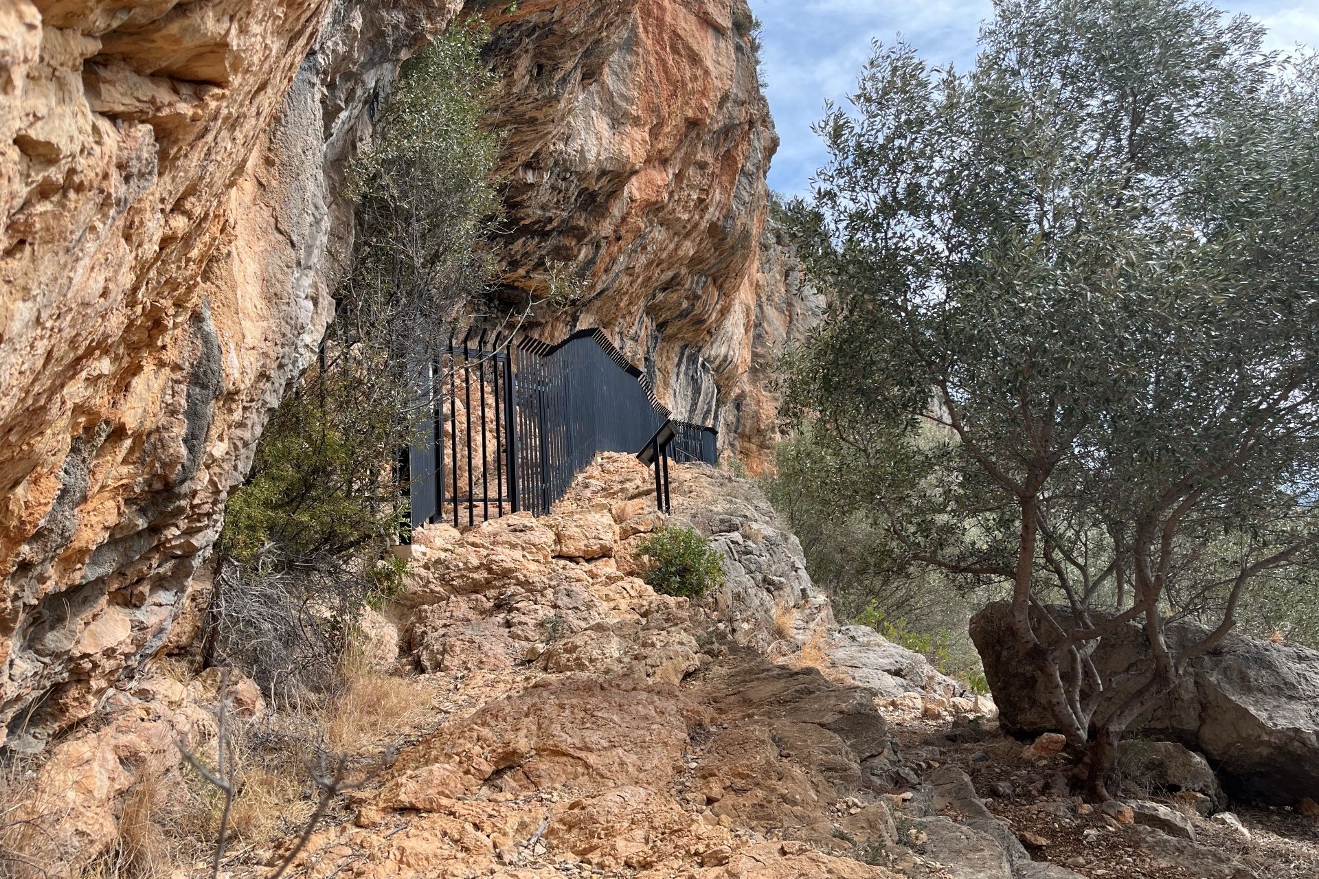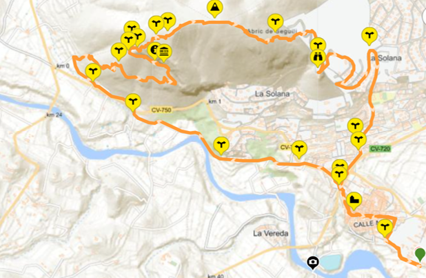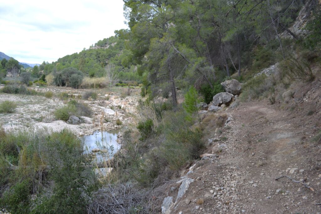 Vanaf de camperplaats wandel je eerst naar het dorp Alcalalí. Vanuit het dorp loop je een klein stuk langs de asfaltweg CV-750 waarna je rechtsaf slaat een onverhard pad in. De route is vanaf hier wit/groen gemarkeerd (de SL-CV). Je loopt omhoog over smalle stenige paadjes door een mooie groene bosrijke omgeving. Op dit deel van de route passeer je diverse klimmuren en rotswanden met prehistorische rotsschilderingen (Art Rupestre, Unesco).