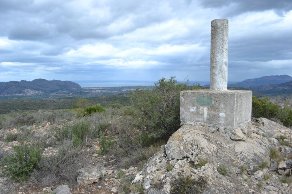 Na bezoek aan de grot, verlaat je even later het pad met de wit/groene markering. De wandeling gaat verder omhoog naar de top. Dit is technisch een moeilijker gedeelte van de wandeling aangezien het pad niet altijd duidelijk te zien is en je soms langs dicht struikgewas, over muurtjes van terrassen en (scherpe) rotsstenen heen moet. Maar als je het spoor volgt, kleine stappen neemt en goede bergschoenen draagt, is de gehele route goed te doen. Ook zijn er af en toe steenmannetjes geplaatst. En dan kom je aan op de top (Tossal Gros) met prachtig uitzicht rondom op de zee in de verte.
