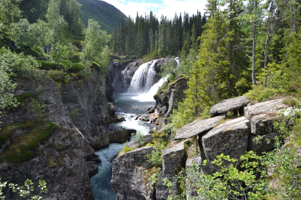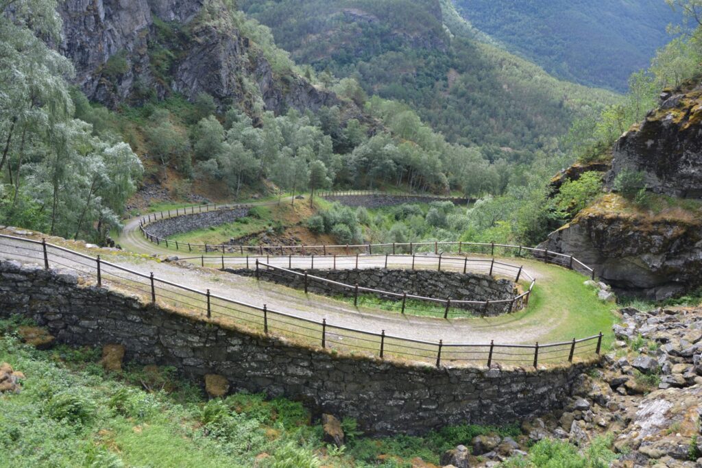 Vervolgens gaat het pad over in een smal bospad en loop je licht dalend naar de prachtige volledig in hout opgetrokken staafkerk van Borgund. Deze staafkerk is waarschijnlijk gebouwd rond 1150. Het dak is versierd met 16 drakenhoofden. De kerk is nu een museum.